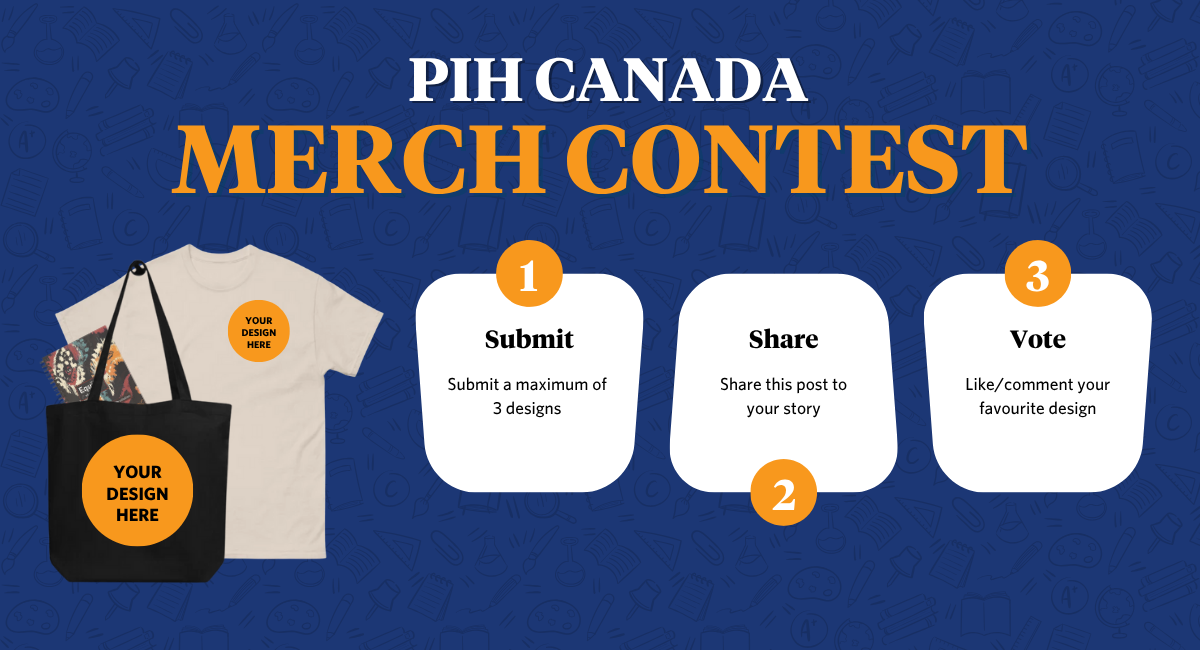 We’re inviting our supporters to submit original artwork for a chance to be featured on PIH Canada merchandise! The winner will receive $250 and see their design come to life in our store.